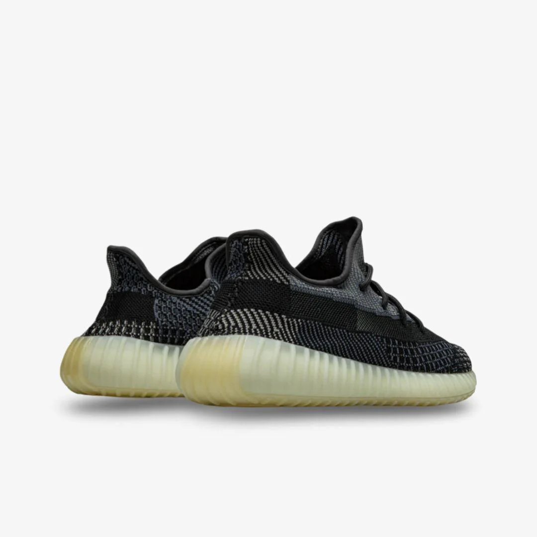 The Adidas Yeezy Boost 350 V2 'Carbon' features a sleek and subtle design, combining a predominantly black Primeknit upper with hints of dark grey and a striking transparent side stripe. This sneaker is built for comfort and responsiveness, thanks to its signature Boost midsole that offers exceptional cushioning for everyday wear. With its understated yet stylish aesthetic, the 'Carbon' 350 V2 is a versatile addition to any sneaker collection.
