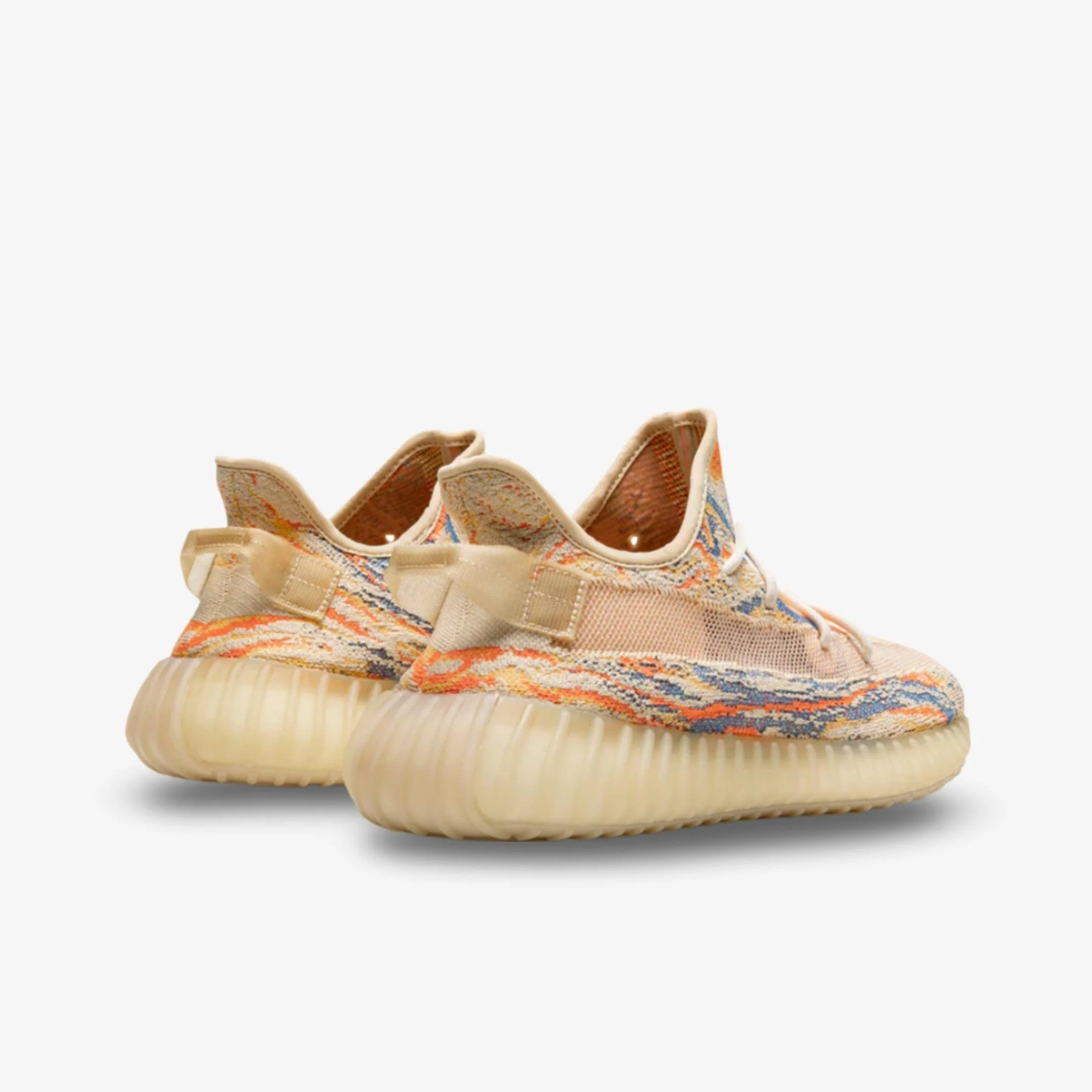 The Adidas Yeezy Boost 350 V2 'MX Oat' features a captivating design that blends earthy tones of beige and orange with a unique marbled pattern across its Primeknit upper. Equipped with the signature Boost cushioning for exceptional comfort and support, this sneaker is perfect for both casual wear and everyday adventures. With its eye-catching aesthetic and contemporary flair, the 'MX Oat' 350 V2 is a standout addition to any sneaker collection.
