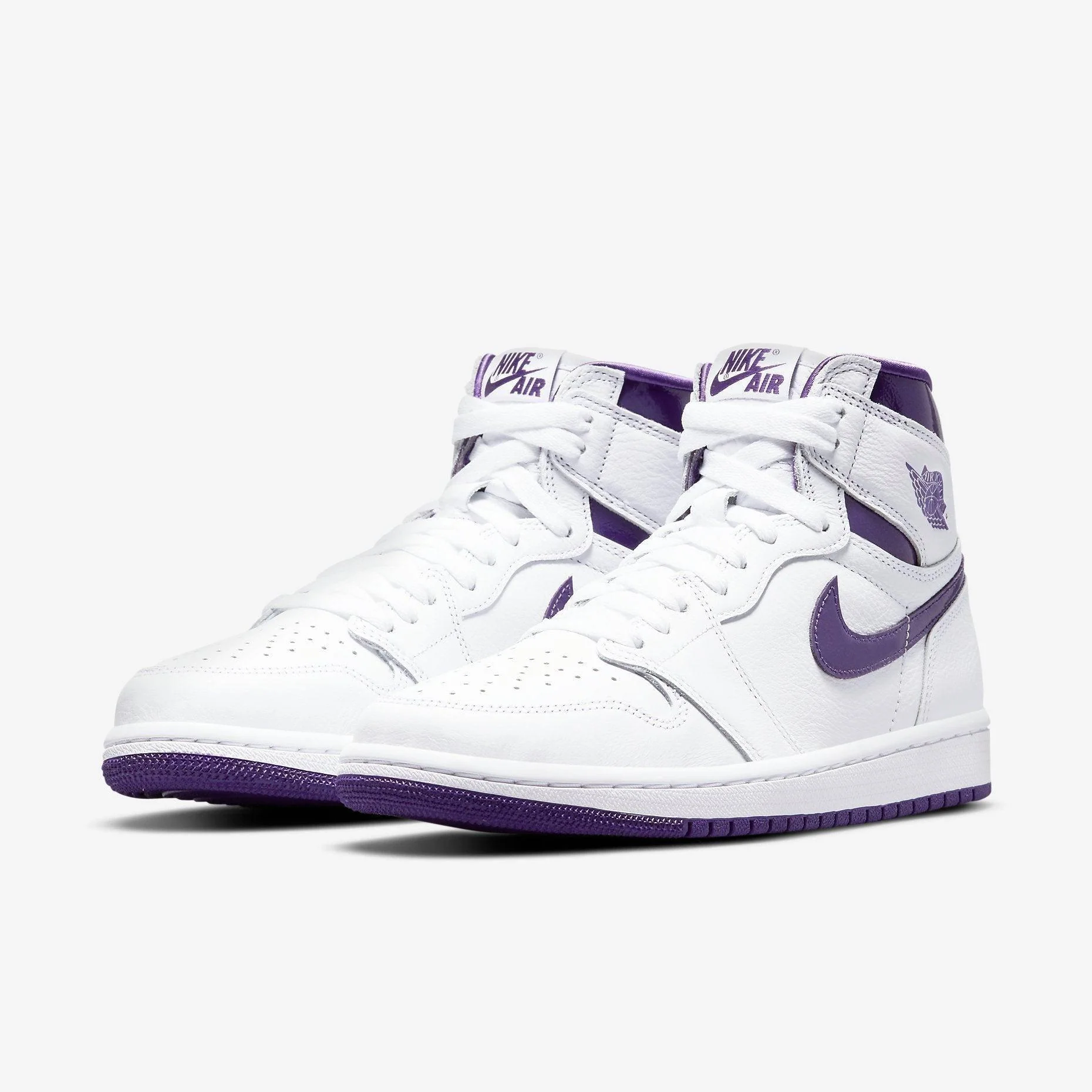 The Air Jordan 1 Retro High OG 'Court Purple' showcases a striking combination of white leather and vibrant purple accents, embodying both style and tradition in its iconic silhouette. Crafted with premium materials for comfort and durability, this high-top sneaker is perfect for making a bold statement on and off the court. Its classic design, paired with the fresh colorway, makes the 'Court Purple' edition a must-have for any sneaker enthusiast
